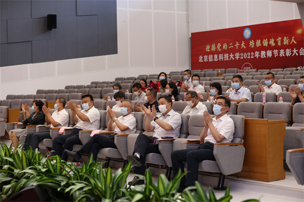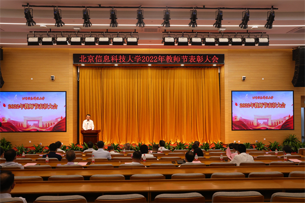 迎接党的二十大,培根铸魂育新人。9月9日,北京信息科技大学在新校区报告厅以线上线下相结合方式,召开2022年教师节表彰大会。校党委书记王传亮,校党委副书记、校长王永生及学校领导班子成员,相关职能部门负责人、获表彰个人及团队代表现场参会。学校全体师生员工线上参会。表彰大会由学校党委常委、副校长于世洁主持。