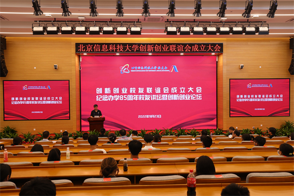9月23日,北京信息科技大学创新创业校友联谊会成立大会暨纪念办学85周年校友论坛在新校区文理楼报告厅隆重举行,创新创业校友分别以现场和视频直播的方式参加盛会。会议由校友会秘书长、校友办主任马绍辉主持。