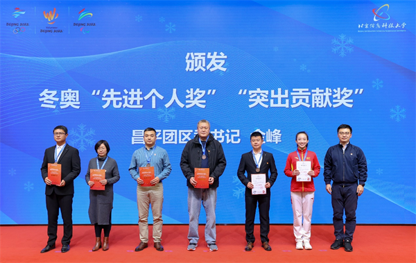 王传亮为“突出贡献单位奖”获奖单位颁奖;周志成为“先进单位奖”获奖单位颁奖;于世洁为“年度优秀志愿者奖”代表颁发证书;曲斌为“北京冬奥会冬残奥会北京市先进个人”获奖人员颁发证书;金峰为冬奥“先进个人奖”、“突出贡献奖”代表颁发证书;任一丁为冬奥“优秀志愿者奖”代表颁发证书。