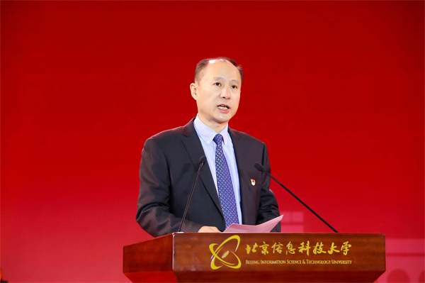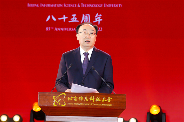 北京市委教育工委分管日常工作副书记张革代表北京市委、市政府,向北京信息科技大学办学85周年表示热烈的祝贺,并发表重要讲话。他指出,北京信息科技大学作为我市重点支持建设的信息学科较为齐全的高校,有着光荣的历史传统和鲜明的办学特色。85年来,学校始终传承红色基因,坚持立德树人根本任务,积极服务首都发展,为加强北京“四个中心”建设作出了积极贡献。张革强调,在全面建设社会主义现代化国家的新征程上,信息科大要以习近平新时代中国特色社会主义思想为指引,牢记教育是国之大计、党之大计,以更高的站位、更宽的视野、更大的力度,谋划和推动北京信息科技大学的建设与发展。张革对学校未来发展提出要求,希望北京信息科技大学在坚持党的全面领导上当标杆,在为党育人、为国育才上作表率,在推动高质量发展上走在前,在服务新时代首都发展上立新功,在建设教育强国、人才强国的伟大征程中,书写更加绚烂的历史篇章,作出新的更大贡献!