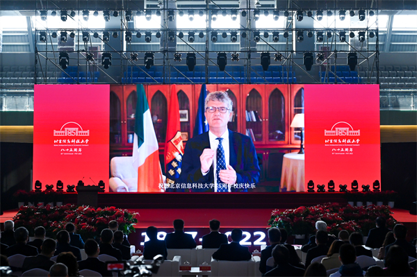 国外友好院校代表、学校离休老干部代表、校友代表通过视频方式共同祝贺北京信息科技大学办学85周年。爱尔兰驻华大使馆、爱尔兰国立科克大学、日本福井大学、美国奥克兰大学、美国威斯康星大学拉克罗斯分校、美国威斯康星大学帕克赛德分校、俄罗斯贝加尔国立大学、北京大学、清华大学、北京理工大学、北京航空航天大学、北京邮电大学、吉林大学、湖南大学、电子科技大学、西安电子科技大学等教育部、工信部、原机械工业部、电子工业部的部分兄弟院校,以及各级党政部门、科研院所、企业、社会团体等单位和个人发来贺电、贺信百余份。