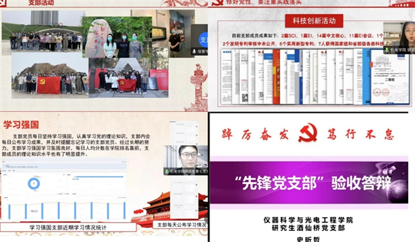 经过前期培育建设、学院推荐、学校初审,共有11个党支部和8名党员参加研究生党建双创汇报验收,11个党支部从深入开展思想政治理论学习、高度重视学风建设、大力加强党支部队伍建设、精心创建支部文化、积极参与志愿服务等方面,介绍了主要做法和取得的成果;8名党员分别从思想品德、学习科研、组织工作以及社会实践等方面进行汇报,分享了在工作和学习生活中如何发挥先锋模范作用,展现信息科大研究生的风采。