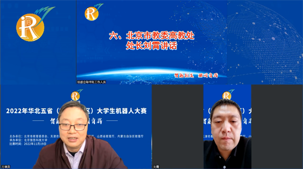 刘霄对各主办单位、各参赛高校以及大赛志愿者对本届大赛的支持和参与表示感谢,对各赛区协办单位及承办单位北京信息科技大学的精心组织和辛苦付出表示感谢。刘霄指出,根据党的二十大精神,我国正走在教育、科技、人才全链条发展的高速路上,其中,高等教育作为龙头应顺应时代发展、适应社会、引领经济。华北五省(市、自治区)机器人大赛融合人工智能,符合现代社会发展需求,即是教师教学成果的检验,也是大学生展示自我的平台,大赛产出的优秀成果正在优化落地,成为改善民生,社会进步的支点。