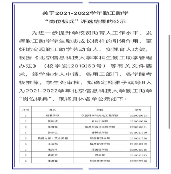 遴选培训“学生资助宣传大使”,规范勤工助学岗位管理,协同学校其他部门在学科竞赛等方面给予学生指导,打造“全育人”助学平台,推动学生培养协同育人机制,让学生在培训中增长技能,在实践中提升能力,培养学生自身“造血”功能,强化学生社会责任意识和奉献精神。