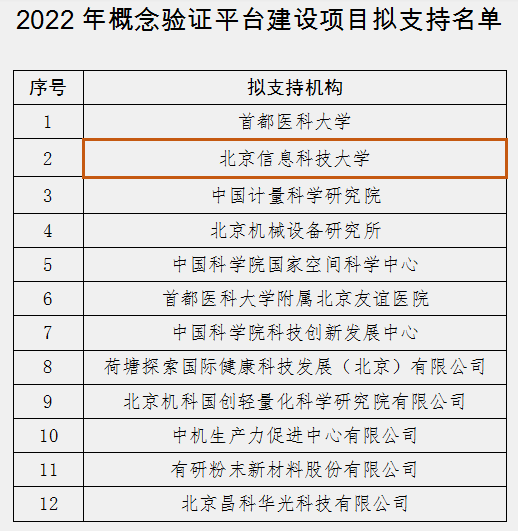 概念验证平台建设项目是北京市为进一步将成果转化支持环节前移,聚焦科技成果转化更初期的概念验证阶段,布局支持科技成果转化“最初一公里”的重要举措,2022年共批准设立首批概念验证平台12个,其中市属高校2个,立项后每个平台将获得市科委、中关村管委会连续3年,每年不高于500万元的成果转化资金支持。