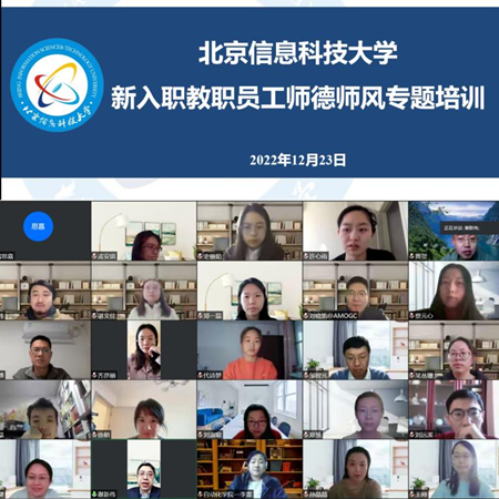 12月23日,党委教师工作部牵头组织开展了以“请党放心·强国有我——树师德,铸师魂”为主题的新入职教职员工师德师风专题培训。培训以线上方式举行,新入职的60余名教职员工参加了此次培训,党委教师工作部副部长兼人事处副处长闫健主持培训会。