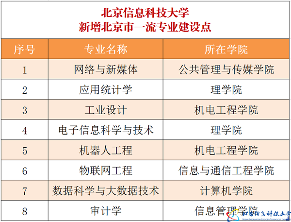 本年度,学校信息与计算科学等3个专业获评国家级一流本科专业建设点,网络与新媒体等8个专业获评北京市级一流本科专业建设点。至此,学校已有14个专业入选国家级一流本科专业建设点,北京市级以上一流本科专业建设点总数达34个,实现了专业大类一流专业全覆盖。此外,学校申报的智能制造工程本科专业获批增设,学校本科专业增至44个。学校计算机科学与技术、信息安全专业顺利通过工程教育专业认证。至此,学校共有9个专业通过教育部中国工程教育专业认证。本年度,学校还积极推进学科专业交叉,布局推动信息特色融入新文科建设,让学校的新文科更具优势和特色。
