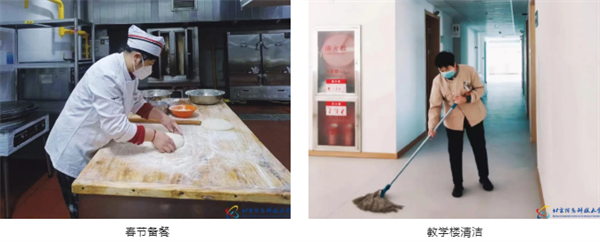 后勤人员全力做好校园供水、供电、饮食、保洁等工作,遇到特殊情况及时解决和修护,保障了校园的整洁有序。