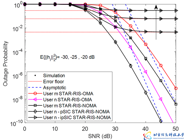 图13 同时透射/反射智能超表面辅助NOMA通信中断性能