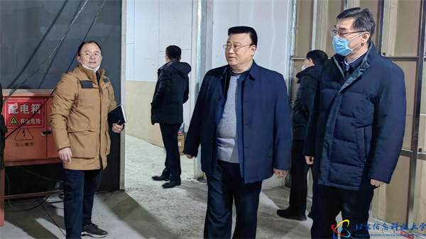 2月12日下午,校党委书记王传亮在新校区检查寒假搬迁准备工作。校党委副书记周志成,校党委常委、副校长陈昕、叶向忠,校党委常委、组织部部长李华涛,校党委常委、宣传部部长杜世智,以及相关职能部门负责人一同检查。
