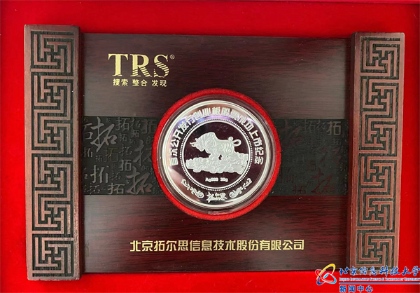 此外,施水才教授还向校史馆捐赠一枚2011年拓尔思上市纪念银币。在学校的办学历史上,非常重视科技成果的产业化工作,拓尔思公司是学校成果转化最早、最成功的案例,使开元集团网站成为市属高校首家、也是至今唯一一家拥有上市企业的高校。多年来,拓尔思公司一直关注和支持学校、学生的发展,2008年起便设立了北京信息科技大学“TRS奖学金”,并在实习、就业等领域给与学校大力支持。
