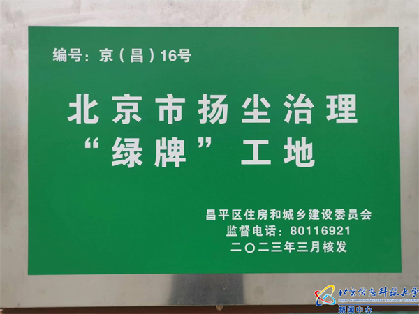 近日,新校区第二教学组团及图书与信息教育中心工程项目作为昌平区19个模范项目之一,荣获北京市扬尘治理“绿牌工地”称号。