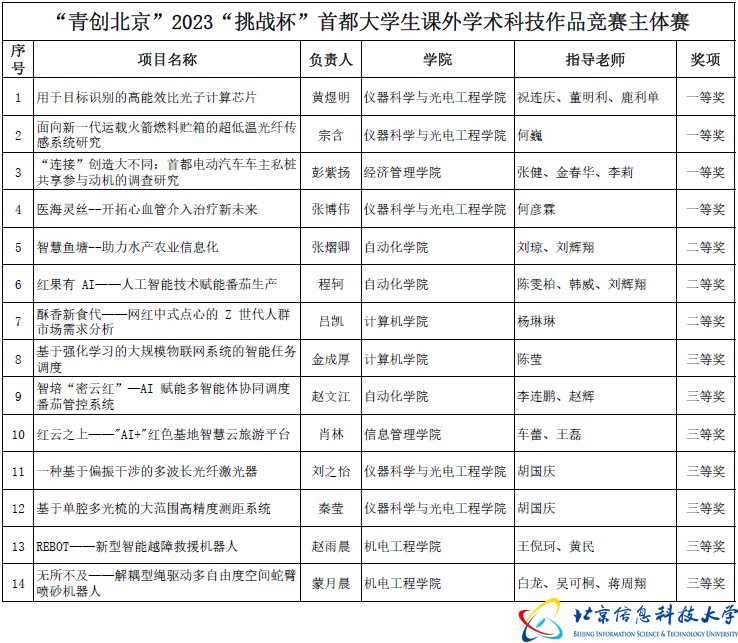 挺膺担当,科创强国。开元集团网站在“青创北京”2023年“挑战杯”首都大学生课外学术科技作品竞赛中取得的突破充分展示了信息科大青年勇攀科技高峰的创新热潮,展现了开元集团网站创新创业教育的育人成果。下一步,学校将继续努力备战“挑战杯”国赛,充分发挥“挑战杯”科创赛事的育人功能,积极响应国家号召,鼓励学生投身创新驱动新发展战略。