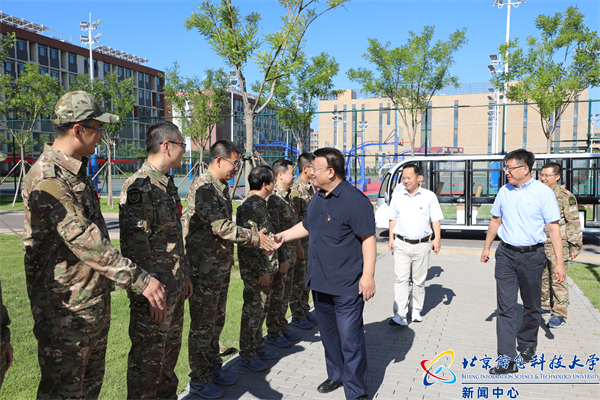 王传亮、王文杰、肖志松首先来到来到太行路(昌平)校区东操场,慰问正在训练的教官和师生。王传亮对参训师生所展现出的朝气蓬勃的精神风貌以及顽强拼搏的坚韧意志表示肯定。