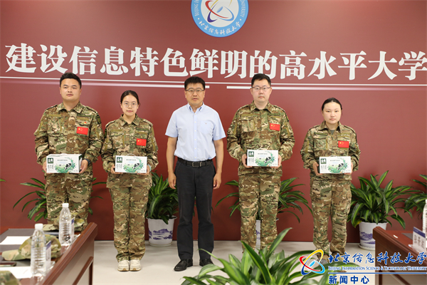 王传亮、王文杰、肖志松分别向学院副书记代表、辅导员代表和学生教官代表发放军训慰问品。(供稿/编辑:党委宣传部 李萌 图片:苗剑飞 学生融媒体工作室 李济垚 孔骁涵 审核:杨静)