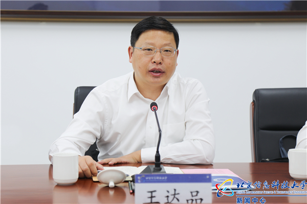 王达品表示,北京信息科技大学红色基因立校,办学历史悠久、底蕴基础深厚,近年来党的建设、宣传思想政治工作、教学科研、学科建设、新校区建设搬迁等各项工作均有声有色,进入到新的发展阶段,为首都高质量发展贡献了力量。对于进一步做好相关工作,王达品提出四点意见:一是紧扣办学定位,面向强国建设主战场,瞄准国家战略和北京国际科技创新中心建设需求,聚焦产业发展、行业发展,深化改革,强化特色;二是落实好立德树人根本任务,以国家社会需求为导向,充分发挥信息特色,勇于破题,创新人才培养机制体制,提高人才培养质量;三是强化宣传思想政治工作,联合市教委、昌平区宣传平台,加强对外交流和媒体融合,进一步打造品牌形象,宣传好首都教育的经验做法。充分发挥信息特色,通过数字思政建设做好学生思想政治工作。四是充分调配利用学校优质资源,加强各类平台建设,做好服务交流,为首都经济社会发展贡献更大力量。