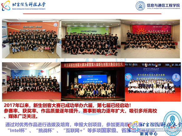学科竞赛递进式培养。注重实践和创新能力培养,自2017年以来,专为大一新生举办的“新生创客大赛”已成功举办六届,参赛率、获奖率、作品质量逐年提升,赛事影响力持续扩大。参加新生创客大赛的同学后续获得省部级、国家级大赛的比例为71.47% 。