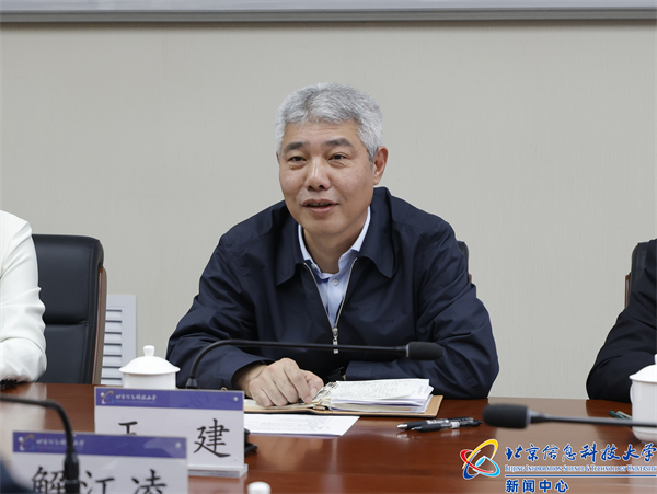 王建感谢学校的热情接待以及一直以来学校对昌平区委区政府、区教工委的配合重视。他指出,北京信息科技大学底蕴深厚,办学水平持续提升,发展态势空前强劲,为属地经济社会发展作出了积极贡献。此次到校交流调研一方面对接学校需求,做好协调服务;一方面研讨双方优质资源,助推校地资源融合共享;此外,本次交流调研也是区教工委贯彻落实主题教育调查研究的重要实践。王建表示,昌平区教工委将充分调动资源,共性问题共性解决,个性问题具体谋划,竭力为学校发展解决实际问题,让师生满意;进一步完善校地沟通机制,将共建共享、互助共赢的举措制度化、常态化,全力推动校地融合发展并持续探索更具实效的新路径。