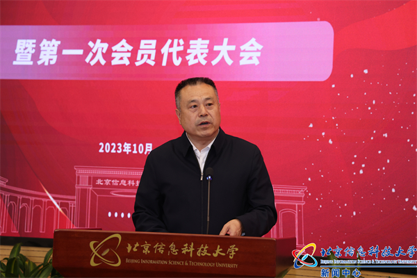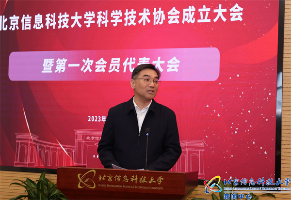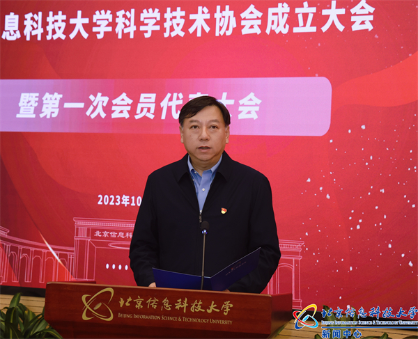 岳鸿志代表北京市科协向学校科协的成立表示祝贺。他表示,信息科大建校86年来,始终秉持“勤以为学 信以立身”校训,主动融入国家机械工业、计算机事业发展进程,聚焦国防领域、国家战略发展需求,形成五大优势科研领域,为国防科技事业作出了重要贡献。学校科协的成立,充分彰显了校党委对新时代科技创新工作的高度重视,体现了学校对广大科技工作者的关心爱护,展现了北京信息科技大学推动科技自立自强、更好服务国防科工事业的毅勇担当,希望学校科协能够强化思想政治引领,培育科技创新人才,加强组织融通赋能,积极参与北京市科协各项工作,进一步强化与在京各级科协组织、学术社团的协同联动、赋能融通,为学校科技工作者和青年学生成长成才、创新发展搭建更广阔的平台,为服务高水平科技自立自强和高素质人才提供更可靠的保障。