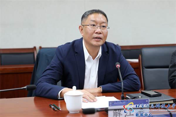 解江凌对市社科联、市社科规划办长期以来给予学校哲学社会科学工作的支持指导表示感谢。他介绍了学校办学历史、办学定位、办学特色、新校区建设情况,以及在服务国家首都战略发展、精准对接高精尖产业发展需求、服务京津冀协同发展和首都区域经济社会发展等方面的努力与成果。他表示,学校虽以工为主,但一直致力于工、管、理、经、文多学科协调发展,希望以本次调研座谈为契机,在市社科联、市社科规划办的指导支持下,进一步聚焦人才培养、科技创新、有组织的科研等领域,结合学校信息特色,产出一批高水平、有特色的研究成果,服务学校高质量发展。期待市社科联、规划办一如既往关心支持学校事业发展,在 “信息+”跨学科新兴哲社类学科专业研究等方面给我们更多指导支持、进一步深化合作,共同为首都经济社会发展贡献力量。
