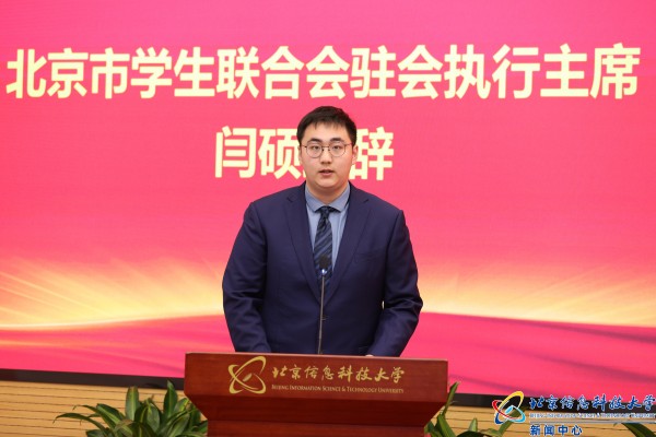 兄弟高校学生会组织代表北京工业大学学生会执行主席阎继文在致辞中表示北京工业大学学生会、研究生会将与信息科大学生会、研究生会携手共进,在合作中谋求共同发展,在新征程中互相促进,一起做好新时期高校学生会、研究生会工作的新课题,展现出新时代首都青年独一无二的风采。