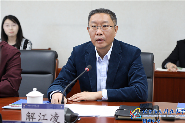 解江凌致欢迎辞。解江凌代表学校对兰州信息科技学院一行的到来表示欢迎,对双方即将签订对口支援协议、进一步深化合作交流表示期待。他从历史沿革、办学定位和办学特色等方面介绍了学校建设发展情况以及近年来学校在服务国家首都战略发展、精准对接国家首都创新发展战略、北京市高精尖产业发展需求等方面的努力和成效。解江凌表示,兰州信息科技学院办学定位清晰、理念先进,以高质量党建引领各项事业稳步发展,为甘肃经济社会发展做出了应有贡献。北京信息科技大学与兰州信息科技学院共同肩负着“科教兴国”的时代使命,将坚决贯彻落实好对口支援协议,在人才培养、学科建设、教师队伍建设、项目联合申报等方面充分发挥特色优势、资源优势和经验优势,竭力履行帮扶义务,在关键处用力、关联处突破,努力做到良性互动、效能叠加、增量共赢,积极打造对口支援和合作发展的典范,为进一步融入“一带一路”倡议,支援西部地区经济社会发展贡献智慧力量。