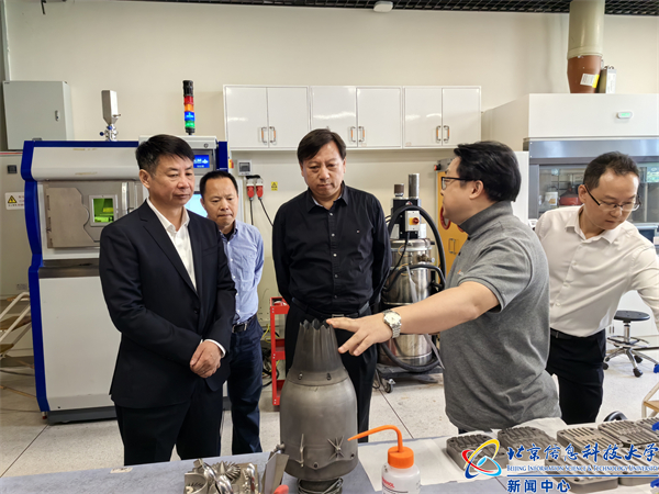 郭福一行先后参观了校史馆、树仁书院、智能机器人与柔性制造重点实验室以及航空发动机3D打印粉材工程实验室,进一步了解学校发展历程、“书院制”学生管理模式以及重点实验室的建设情况和成果转化情况。