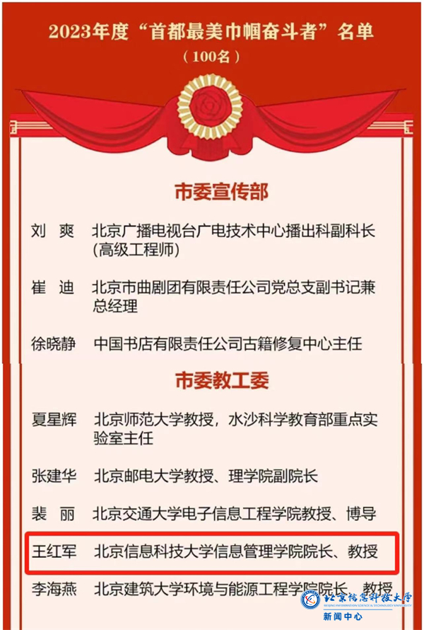 为大力弘扬“把使命铭记在心底,把奋斗写在征程上”的价值理念,团结引领首都妇女群众在科技创新、乡村振兴、文化建设、社会服务等各领域各战线奋勇争先,做时代的书写人、追梦的奋斗者,2023年,北京市妇联在全市开展“首都最美巾帼奋斗者”选树活动。经单位推荐、各系统初审、北京市妇联统一评选,最终全市有100名优秀女性入选。开元集团网站信息管理学院院长王红军教授成功获评“首都最美巾帼奋斗者”。