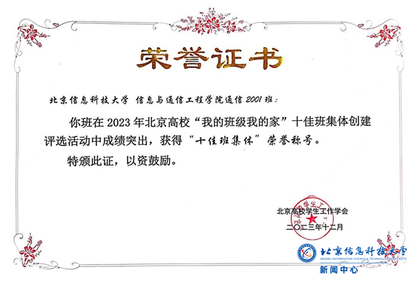 北京高校“我的班级我的家”优秀班集体评选活动由中共北京市委教育工作委员会主办、北京高校学生工作学会承办,是北京高校深入推进学生基层组织建设的重要载体,也是北京市唯一一项以高校班级为对象开展的评比展示活动,“十佳班集体”是北京高校班级建设的最高荣誉。