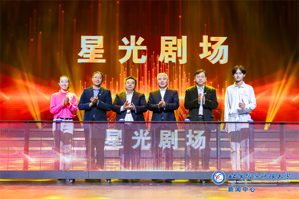 齐春利、王建、解江凌、郭福和健美操世锦赛冠军、学校优秀社团指导教师黄诚开,2023年北京大学生舞蹈节学生形象代言人张祚铭带领全场师生一起点亮“星光剧场”。