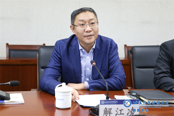 解江凌对建工集团领导一行来校交流表示欢迎,对其在学校新校区建设中的辛劳付出和建设成果表示充分肯定。他介绍了学校各方面事业发展情况,尤其是立足新发展阶段、服务国家首都战略、持续发挥科技创新优势所取得的突破性成就。解江凌表示,面临前所未有的发展机遇,学校不断加快建设信息特色鲜明的高水平大学的坚实步伐,当前,新校区的建设仍是眼下最紧要的任务之一。北京建工集团作为中国建筑业的龙头企业,以匠心初心铸就时代精品、以民生温度作为价值刻度,其建德立业、建楼育人的发展理念与学校立德树人、科教报国的理念高度契合,在服务发展、保障民生中实现了领域内多个“第一”,彰显了情怀责任担当、体现了实力魄力能力。希望建工集团立足良好合作根基,持续发挥技术优势、经验优势,精益求精、按时按质做好新校区一期建设收尾工作并积极参与二期建设;希望双方充分发挥优势,优化资源配置,提高效率质量,围绕人才培养、实习就业、科技创新、成果转化、应用场景等方面开展多元交流,尤其是以学校建设数智产业学院的契机和资源充分对接建工集团数字化转型的实际需求,进一步推动产学研用深度融合,在携手培育塑造新质生产力和高质量发展核心竞争力的过程中体现市属国企和市属高校的责任担当。