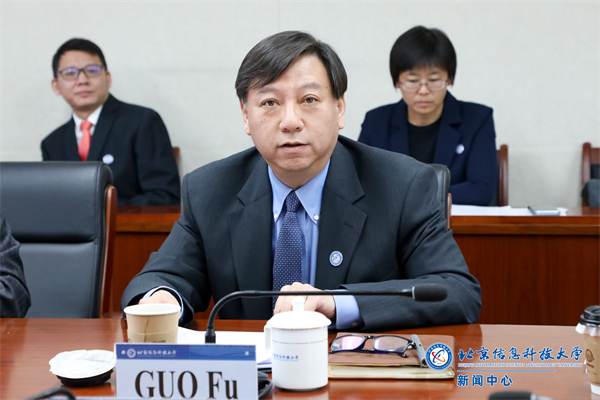 会前,校党委书记解江凌,校党委副书记、校长郭福在沙河校区立德楼热情会见了来访的爱尔兰都柏林理工大学校长大卫·菲茨帕特里克(David FitzPatrick)一行。解江凌表示,学校所在的昌平区承载集聚了北京国际科创中心众多教育、科技、产业力量和资源,伴随着昌平区进入创新发展的快车道,其科研、教育和国际化优势日益凸显。北京信息科技大学立足区位优势,推动全方位内涵建设,迈入高质量创新发展的新征程。学校在新时代高等教育改革创新中勇当先锋,致力于与都柏林理工大学等国际高水平院校开展各类合作,希望双方以此次合作协议的签署为契机,把握时代机遇,在双方优势领域探索开展更为深入的交流合作,为国际学术文化交流互通贡献高等教育的智慧和力量。
