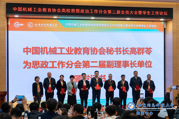 阳和启蛰,品物皆春。在绿意盎然、生机勃发的美好时节,由中国机械工业教育协会高校思想政治工作分会主办、北京信息科技大学承办的中国机械工业教育协会高校思想政治工作分会第二届会员大会暨学生工作论坛在北京信息科技大学沙河校区隆重举办。本次大会以“推进数智思政建设,提升高校育人能力”为主题,来自北京工业大学、北方工业大学、北京工商大学、北京信息科技大学、合肥工业大学、沈阳工业大学、哈尔滨理工大学、内蒙古工业大学、太原科技大学、燕山大学等全国23所高校的思政工作负责同志集聚信息科大,探索思政改革新路径,激发思政育人新动能。
