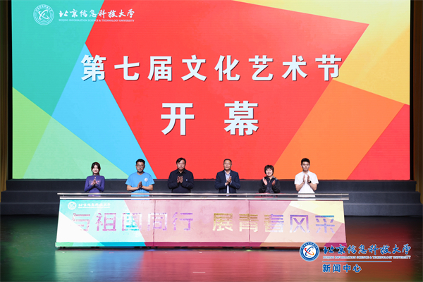在师生的瞩目期待和热烈浓厚的氛围中,解江凌,郭福,校田径队指导教师吴淑君,教职工馨声合唱团盛利国,全国青马班学员、优秀退伍大学生苏稳以及学校操舞队主力队员陈嘉琳共同启动推杆,信息科大第七届校园文化艺术节正式开幕!