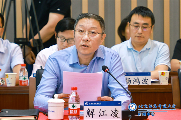 在会议第一阶段,北京信息科技大学党委书记解江凌致辞。他首先代表学校向出席会议的专家和领导表示热烈的欢迎和衷心的感谢!他表示,本次审核评估是对学校综合实力、办学水平和人才培养质量的全面检视和综合研判,更为学校深化教育教学改革,提升本科人才培养质量,加快推进建设信息特色鲜明的高水平应用型大学创造了机遇。解江凌简要介绍了学校近年来聚焦新时代高等教育使命任务,紧扣办学定位和发展需求,落实立德树人根本任务,以高质量党建引领高质量发展,全面提高本科教育教学水平和人才培养能力的总体情况。解江凌表示,学校将积极配合专家,从以下三个方面,扎实推进、有效落实本次审核评估各项工作。一是提高政治站位,统筹推进评建工作,对标对表评估工作要点,全面梳理工作、检视问题、总结经验,强化以评促建。二是结合作风建设,深化内涵式发展。将把审核评估融入作风建设,不断加强作风、教风、学风建设,深化“三全育人”、落实“五育并举”,营造起重视教育教学和干事创业的良好氛围。三是全力支持配合,做好后半篇文章。将全力支持、配合专家组工作,确保审核评估工作顺利开展,取得预期成效。将坚决抓好反馈问题整改落实,将评估结果充分应用于人才培养的全过程和学校治理的各环节,真正做到“以评促建、以评促改、以评促管、以评促强”。
