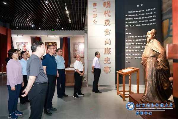现场学习环节,校领导班子参观了明代反贪尚廉历史陈列馆,通过壁画、雕塑、展板、电子屏演示等多种形式,深入了解明代如何运用回避制度、考核制度、监察制度以及反腐律法等建立反贪制度体系;深入感悟明代反贪倡廉、惩贪治贪的廉政思想文化;深切洞察了“廉洁则政兴、腐败则政衰”的不变历史铁律;进一步增强了领导干部反腐拒贪、廉洁用权、廉洁修身的政治自觉和“知敬畏、存戒惧、守底线”的行动自觉。 (供稿:党委宣传部 李萌 图片:研究生学生助理 刘涧 审核:杨静)