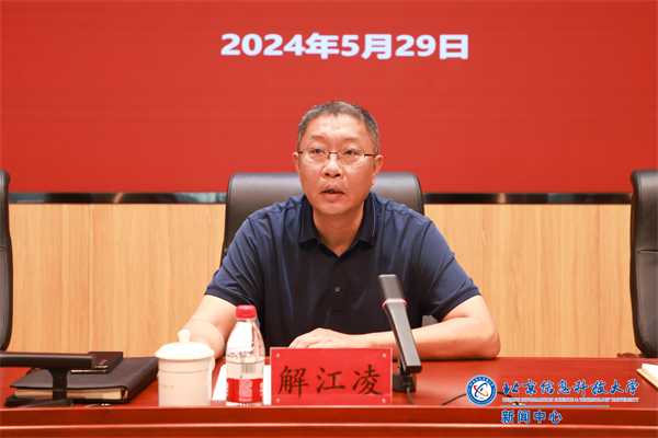 针对市教育两委领导对学校建设发展的指示部署和建议指导,结合学校现阶段加快建设信息特色鲜明的高水平大学的实际情况,解江凌提出四点工作要求:一是把握当前机遇,加快高质量发展。面对新一轮科技革命、产业数字化变革的时代机遇和北京建设国际科技创新中心的战略部署,学校要抢抓宝贵窗口期,牢牢把握高质量发展首要任务,厚植优势、主动融入、强化特色、内涵发展,持之以恒贯彻落实好上级决策部署,保持强劲发展态势,以“信息+智能+”特色优势专业学科群建设、新校区二期工程建设立项、进一步加强有组织的科研等当前重要工作为有力抓手,全力以赴推动落实,为加快高质量发展奠定坚实根基。二是创新发展模式、探索新兴赛道。面对服务支撑京津冀协同发展国家战略的人才需求和培育塑造新质生产力的动力需求,要加强系统思考、科学谋划,深度推进政校地企融合发展,将当前着力推进的京津冀职业教育改革示范园区、信创小镇、科技小院等项目打造成服务国家首都战略、创新发展模式路径、拓展发展领域赛道的示范标杆项目,为学校持续发展注入新血液、提供源动力。三是加强内涵建设,提升办学实力。要紧扣“应用型、特色鲜明、高水平”三个关键词,坚决落实好市委教育两委给学校的办学定位;坚决强化信息特色、军工特色和行业特色的办学特色;坚决锚定高水平的建设目标。持续加强内涵建设,要聚焦教育的政治属性,加强党对学校工作的全面领导,落实立德树人根本任务,全面提升高水平人才培养能力;要聚焦教育的战略属性,把服务国家首都和区域发展作为学校工作的价值取向和目标追求,切实提升学校核心竞争力。四是压紧压实责任,确保安全稳定。要深刻认识到安全稳定是重大的政治问题、基本的民生问题、重要的社会问题,要切实落实安全责任、守好意识形态阵地、加强隐患排查、防范化解风险,特别稳妥推进健翔桥校区的搬迁工作,确保校园安全稳定。