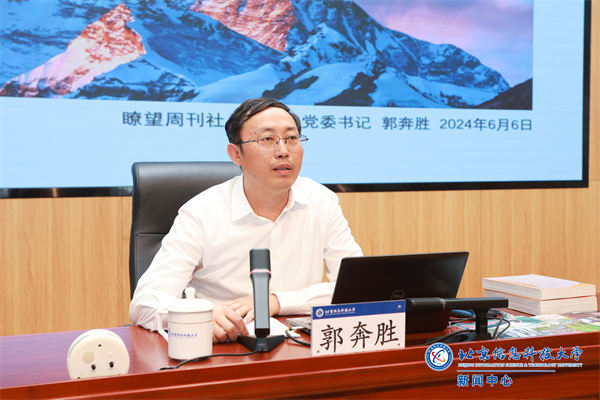 郭奔胜介绍了新华社创办、被誉为“中国时政期刊排头兵”的《瞭望》新闻周刊的发展历程,以及《瞭望》在不同历史时期传播正能量、讲好中国故事所发挥的积极作用。他高度评价了北京信息科技大学在培养应用型创新人才方面作出的突出贡献,并表示期待双方进一步加强合作,共同为党和国家的高等教育事业和新闻舆论工作作出新贡献。