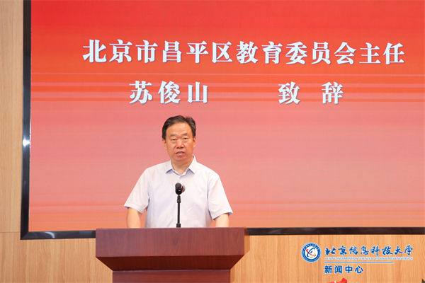 苏俊山介绍了双方合作的主要内容。他指出,合作协议的签署是在习近平总书记关于“深化教育改革,加快教育现代化,办好人民满意的教育”的重要指示下,深入贯彻落实昌平区政府与北京信息科技大学合作框架协议内容的具体举措,在助推昌平区教委与驻昌高校合作方面具有典型的示范引领作用。他表示,昌平区教委将严格按照协议要求,积极推进各项工作如期落实,希望北京信息科技大学发挥高校师资力量、学科建设和平台资源等优势助推昌平区基础教育高质量发展。