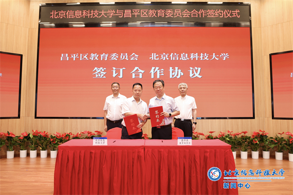 在王建、解江凌的鉴签下,苏俊山和肖志松分别代表北京市昌平区教育委员会和北京信息科技大学签署了合作协议。