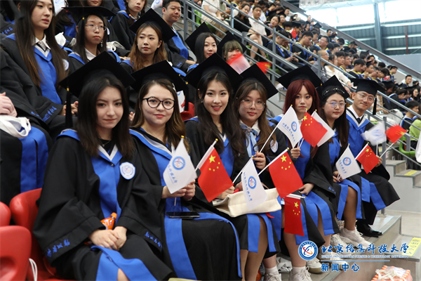 计算机学院佘怡欣、游凯卉两位同学作为毕业生代表发言。他们代表全体毕业生同学向母校的沃土培育和师长的传道授业、倾心呵护表示感谢,通过回顾四年成长历程细数了与学校共同成长的点滴,他们表示,将始终秉承“勤以为学、信以立身”的校训精神,继续携手向上,绽放梦想的力量,以有为的青春践行“强国有我”的铮铮誓言!