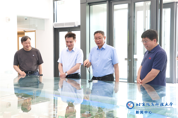 座谈结束后,解江凌与谢文征一行参观了沙河校区立德楼沙盘。解江凌介绍了新校区的当前建设进展、未来建设规划等情况。