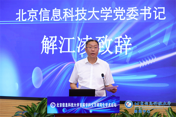 解江凌在致辞中表示,在当前大力发展新质生产力,加快推进教育强国建设背景下,学校坚持以学科建设为龙头,强化信息和国防特色,促进学科交叉,不断提升学科建设和研究生教育质量和水平,服务国家和首都高质量发展的能力越来越强。本次论坛以学科交叉为主题,具有很强的现实性和时代性,是学生拓宽学术视野、激发创新思维的重要举措,也是学校推动教育改革、提升教育质量的有效尝试。他强调,北京信息科技大学将深刻认识学科交叉融合的重要意义、深入把握学科交叉融合的根本方向,秉持“交叉、融合、创新、发展”的理念,携手并进,持续精进,为服务国家和首都经济社会高质量发展作出更大贡献。