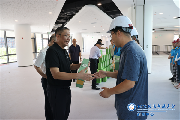 督查调研过程中,解江凌一行还专门慰问了暑期一直坚守岗位、争分夺秒赶工期的各施工单位、监理公司以及学校各单位一线工作人员。他向坚守岗位的工作人员表达了关怀问候,对他们顶骄阳、冒酷暑,辛勤奋战、无私奉献的精神给予赞扬,叮嘱大家要在保证工程进度和质量的同时,高度重视高温作业安全,做好防暑降温措施,要为施工人员提供周到的后勤服务,确保各项工程项目安全、有序、稳步推进。
