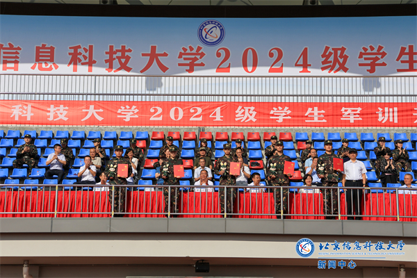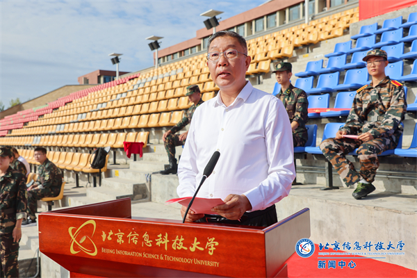 校党委常委、副校长王兴芬宣读北京信息科技大学2024级学生军训团成员名单。