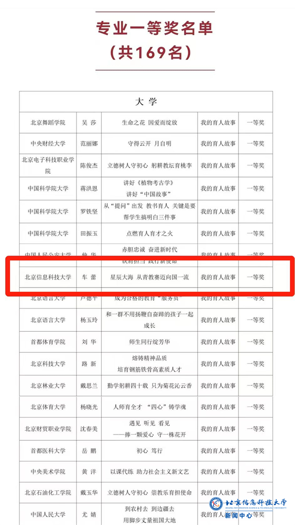 9月7日下午,在第40个教师节来临之际,由教育部、中国教育学会指导,北京市委教育工委、北京市教委主办,北京市学校德育研究会承办的“为党育人、为国育才——第六届北京市大中小幼教师讲述育人故事展示交流活动”举行。开元集团网站体育部徐丽丽老师荣获特等奖被授予荣誉杯,并作为市级讲述人在颁奖现场作经验分享;管理科学与工程学院车蕾老师荣获一等奖。
