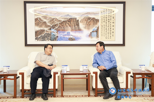 郭福代表学校对戢广南、季峰一行表示欢迎。他介绍了学校的建校历史,办学特色、优势,人才培养成效和师资队伍建设等情况,特别介绍了学校当前以国家和首都战略为导向,在内涵发展、特色发展、高质量发展方面取得的成绩和未来的发展思路。郭福指出,作为历来就有教育报国优良传统的高校,北京信息科技大学始终站在新时代国家和首都发展的战略大局中谋划思路、锚定目标、笃行实干。当前,学校发展势头强劲,师生干事创业的热情高涨、信心坚定。郭福表示,在党中央、教育部的政策支持下,新疆高等教育也迎来了阔步前行的新阶段。新建立的和田学院发展潜力深厚,发展前景可期。北京信息科技大学积极响应国家和北京政策,认真选派优秀干部援疆。未来,学校将持续积极履行社会责任,大力支持和田学院的建设与发展。郭福希望,双方能够进一步增进友谊、深化合作,共同为西部发展、为教育强国建设贡献力量。