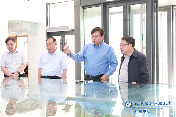 戢广南、季峰一行还参观了立德楼新校区沙盘。郭福介绍了新校区的建设进展、用地设计、师生搬迁入驻,以及学校充分运用区位优势,积极加入沙河高教园区高校联盟、开展校城融合等方面的情况。
