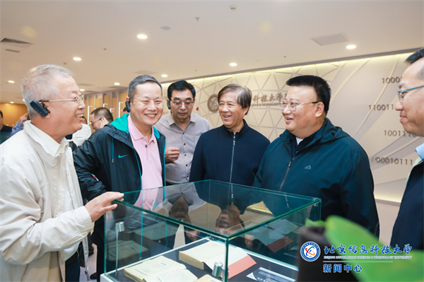 老领导们还参观了立德楼沙河校区沙盘。郭福聚焦图书馆落地开馆、工学楼建成使用、师生搬迁入驻、二期建设规划等方面,详细介绍了新校区的新变化、新成效与新未来。郭福强调,信息科大的建设与发展凝结着老领导们的艰苦付出和无私奉献,更承载着老领导们的关心厚爱和殷切期望。郭福指出,信息科大始终以国家战略和社会发展需求引领前进方向,正朝着建设“温暖校园、安静校园、活力校园”,实现内涵发展、特色发展、高质量发展的目标大踏步迈进。郭福期盼,老领导们继续发挥光和热,不断为学校发展出实招、献良策,推动学校办学水平和质量再获新突破、再上新台阶!