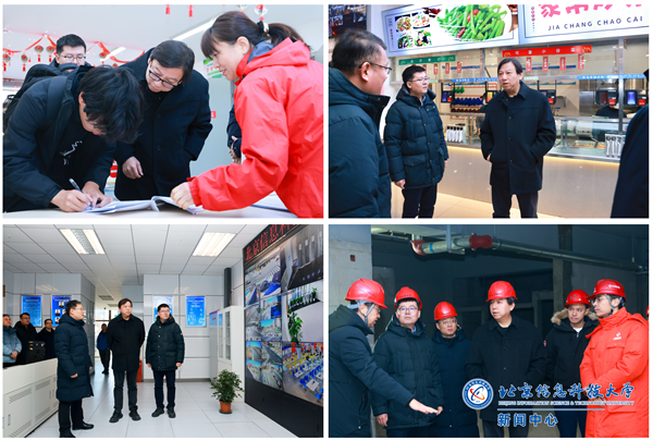 郭福、贺威一行重点检查了沙河校区供热保障中心、菜鸟驿站、学生公寓、学生食堂、安防中心以及健翔桥路人防工程施工现场等关键区域,详细了解了供暖设备和中水处理站运行情况,具体询问了寒假留校学生住宿安排和春节慰问活动,以及寒假期间学校食堂档口开放、快递、超市等方面的服务时间安排等事项,认真查看了安防中心视频调控运行情况、寒假安防工作安排以及健翔桥路人防工程施工进度。郭福在检查过程中对坚守岗位、辛勤付出的工作人员表示感谢。他强调,春节临近,各部门要始终保持高度的责任心和使命感,认真部署寒假期间本单位的安全稳定工作,妥善安排好假期值班值守。要强化安全用电用火意识,定期进行安全隐患排查,确保寒假期间校园各项服务设施安全与高效运行,为留校师生提供周到细致的服务。要坚决守牢安全生产底线红线,在安全生产基础上,全力保障健翔桥路人防工程施工进度。